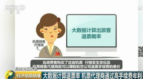 据业内人士介绍,有的机票销售代理商,直接靠退票手续费盈利,他们通过大数据计算出旅客的退票概率,选择退票概率高的航线以超低价格销售机票,来吸引消费者,同时制定高昂的退票手续费。当消费者购买了这些机票,行程发生变化后,机票销售代理商就可以赚取航空公司退票手续费的差价。