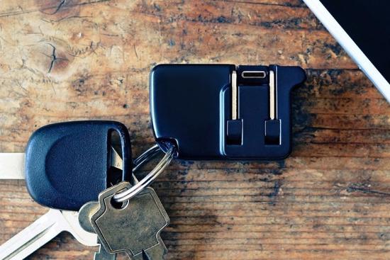 对于手机重度依赖者或者业务比较繁忙的人士来讲,每天随身携带充电器是相当麻烦的一件事情。如果恰好你不想背包轻装简行的话,那么充电器无疑成为了一个十分麻烦的累赘。现在好了,聪明的设计师为你提供了一种更为便捷的方案,那就是把充电器做成钥匙链,不仅十分小巧而且没有数据线纠缠在一起的烦恼,这个设计是不是很赞?