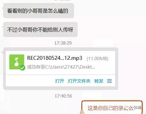 因为我明确表示自己第一次接触到磕炮,小姑娘“好心”的传给了一份和别人的磕炮录音,说这是特意为我这种新手准备的样本。