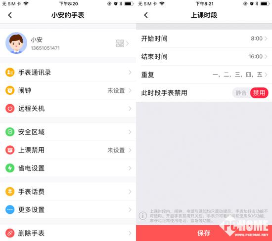 而在设置中,家长可以对手表可以访问的通讯录进行设定,最大程度上保护孩子不受外界的打扰。还可以设定上课禁用、自动关机的时段,保证孩子不会因为手表而分散注意力并延长续航时间。