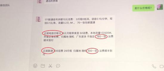 黑卡卖主:手机卡都是已经实名过,收到之后直接使用,号码有170、171开头的,也有正规移动联通电信13、15、18开头的,它们的价钱都不一样。