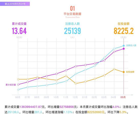一两理财官网公布的数据显示,截止5月31日,;平台注册总人数为2.5万,累计成交金额13.64亿元,在投金额为8225.2万元。