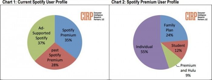 市场调查机构Consumer Intelligence Research Partners(CIRP)提供的Spotify第二季度业绩表现数据显示,在美国市场受苹果Apple Music和其它流媒体音乐服务的竞争影响,Spotify在美国高级付费用户的比例数为35%,65%的用户为免费用户。
