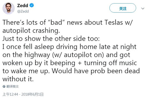 Zedd推特截图6月4日消息,据国外媒体报道,著名音乐制作人、DJ、特斯拉车主Anton Zaslavsk(艺名Zedd)日前在推特(Twitter)上分享称,特斯拉