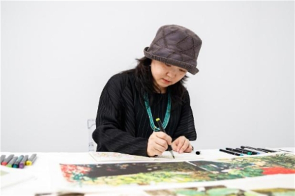 “我们也一直在思考,如何再利用那些报废的相机,”佳能(中国)有限公司执行副总裁石井俊幸表示,“后来在与艺术家磋商的时候,康蕾老师敏锐地发现把一个相机拆解之后,各种零部件的颜色是不一样的,是五光十色的。她说实际上相机的零部件本身就具有艺术性,比如说像传感器是黑色的,其他部位还有绿色、黑色的或者褐色等各种各样的颜色,可以利用起来。”
