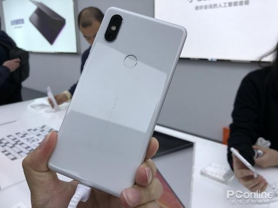 相比之下,小米MIX 2S采用了金属中框+陶瓷后盖的设计,白色版的中框为银色,陶瓷背壳依旧温润如玉。黑色版本的中框仍为黑色,从观感上来说一体性会更强。