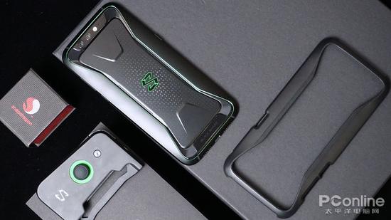 黑鲨手机拥有自己设计的手柄和保护壳。事实上,这个手柄要想套牢在手机上就必须得借助这个外壳。套上去之后,手柄和手机结合紧密,并没有明显的松动,也使到原本修长的手机变得更加修长了。